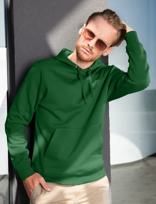 Herrtröja med huva utan dragkedja, grön på flaska, S - produktfråga