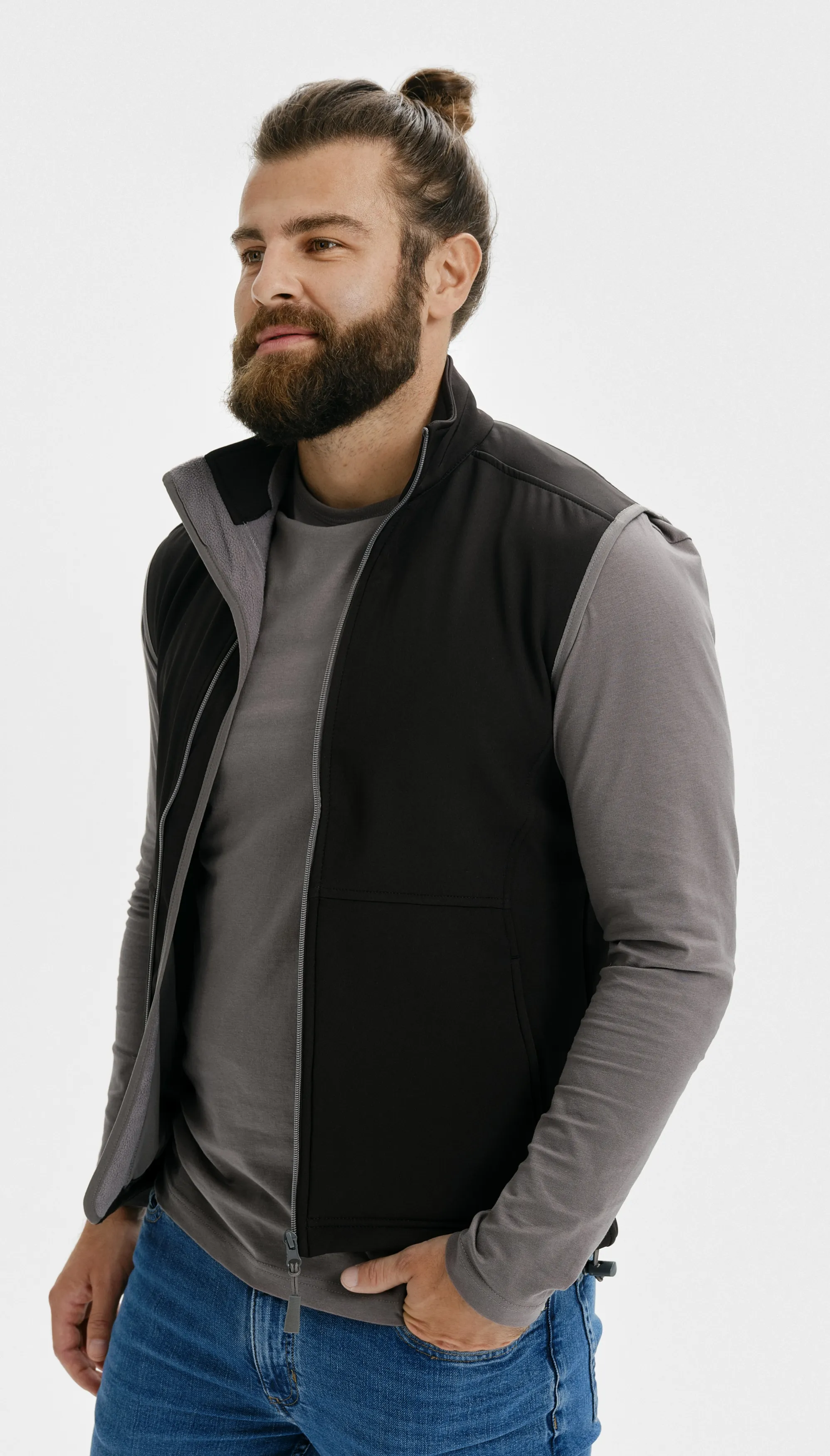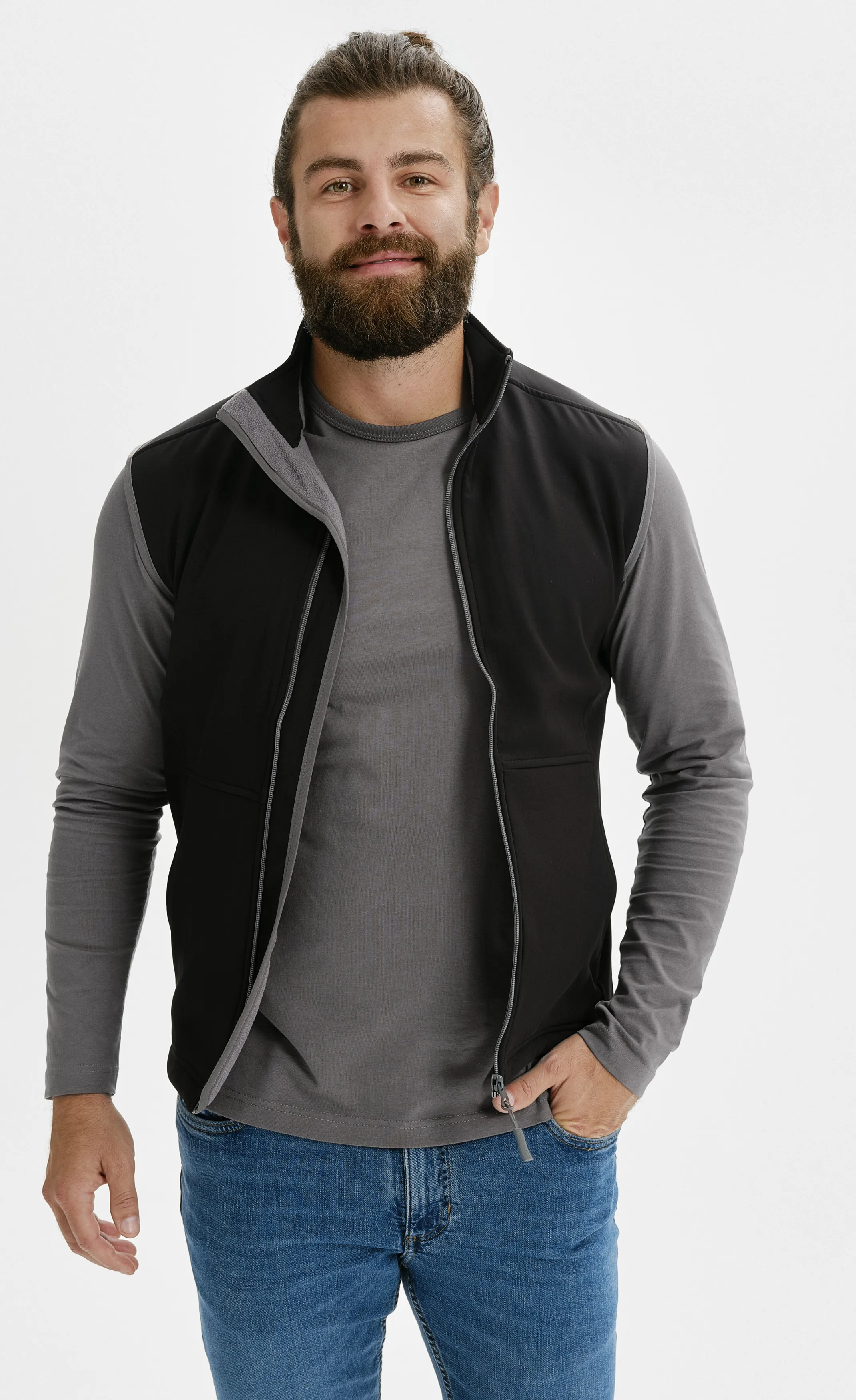 Softshellväst för män med fickor och dragkedja i full längd. Mer