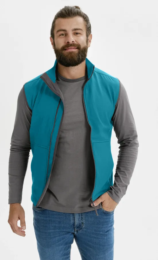 Softshellväst för män med fickor och dragkedja i full längd.