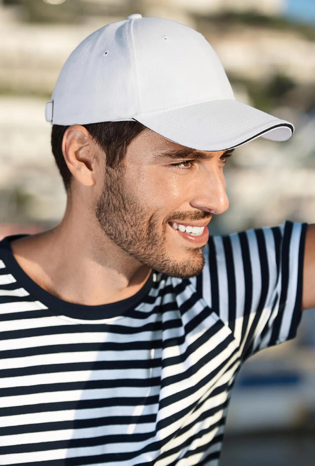 Kvalitet 6-panel bomullskeps med mässingsklämma och kontrastrand.