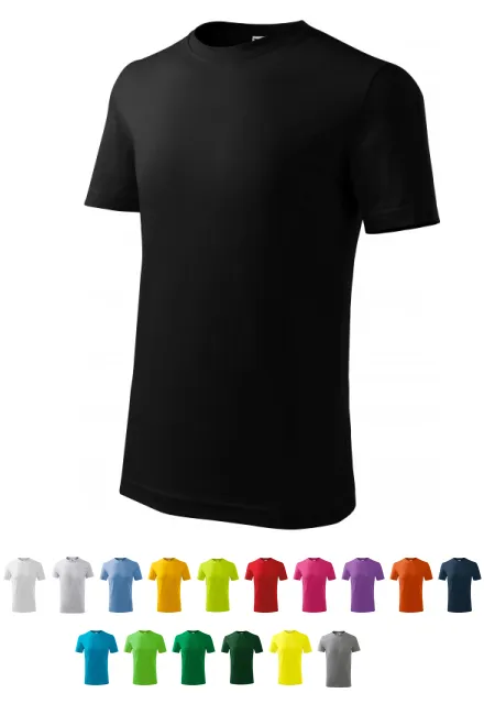100% bomull • 160 g/m2 (GSM) • 6 färger • storlekar 110 cm / 4år upp till 158 cm / 12 år
