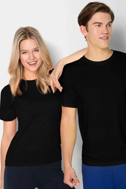 Enfärgade svarta T-shirts med kort ärm utan tryck är tidlösa basplagg som bör finnas i varje garderob. Deras universella design gör dem lätta att kombinera med nästan vilken outfit som helst – de passar perfekt till jeans, kavaj eller sportiga byxor.