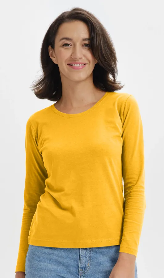 T-shirt för kvinnor med långa ärmar, gul, XS