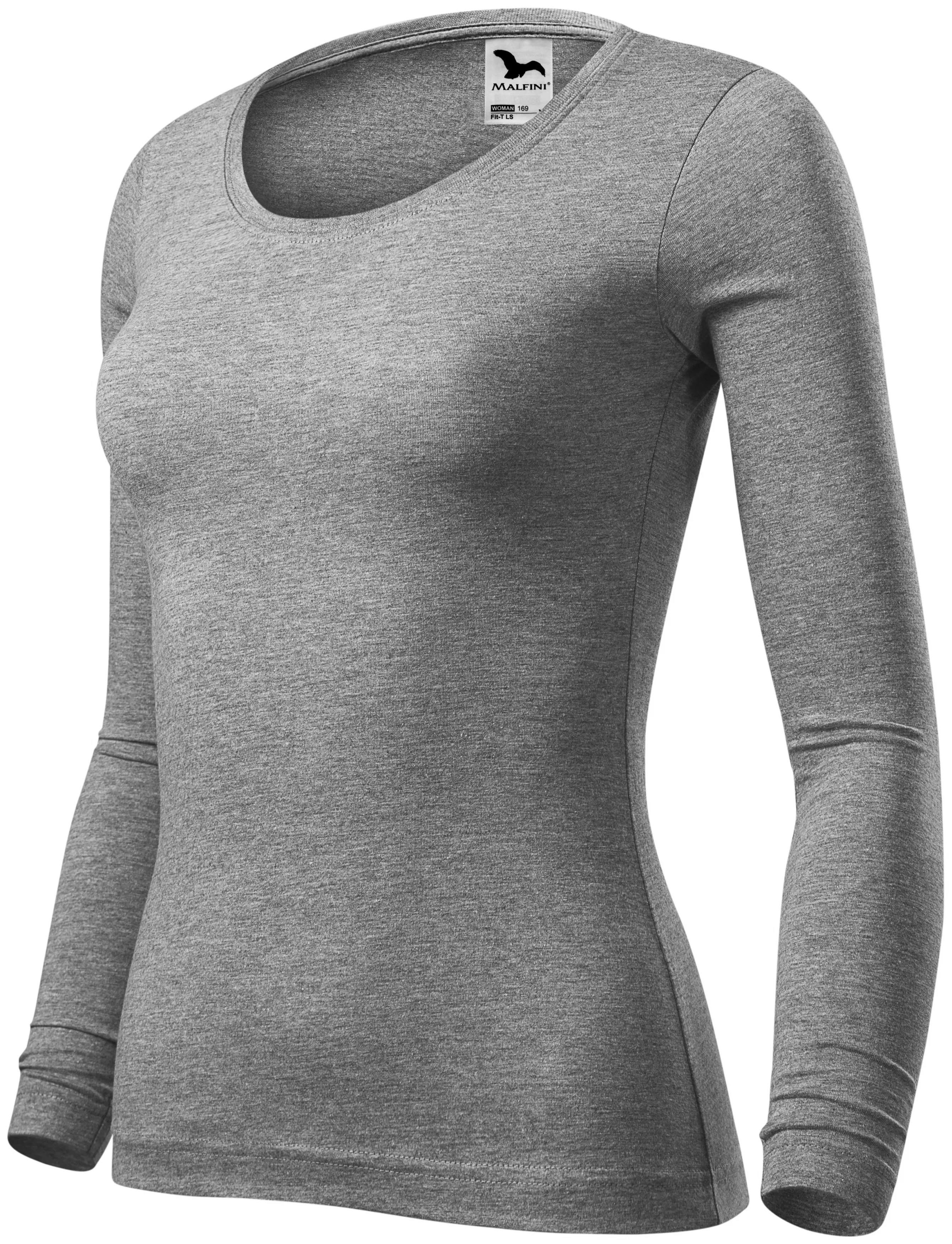 T-shirt för kvinnor med långa ärmar, mörkgrå marmor, XS