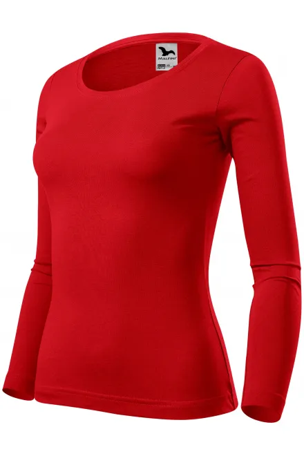 T-shirt för kvinnor med långa ärmar, röd, XS