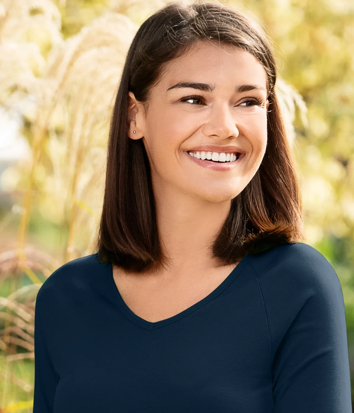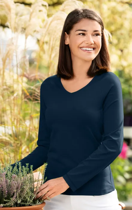 T-shirt med avsmalnande V-ringad dam är gjord av bomull med en blandning av elastan för maximal komfort hela dagen. Det exakta förhållandet är 95% bomull och 5% elastan.