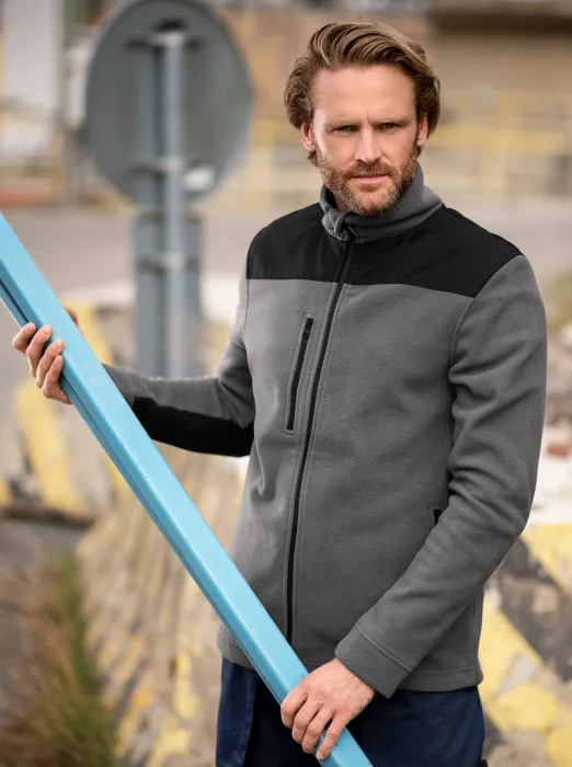 Den varma unisex fleecejackan har separata fickor med praktisk dragkedja på båda sidor framtill.