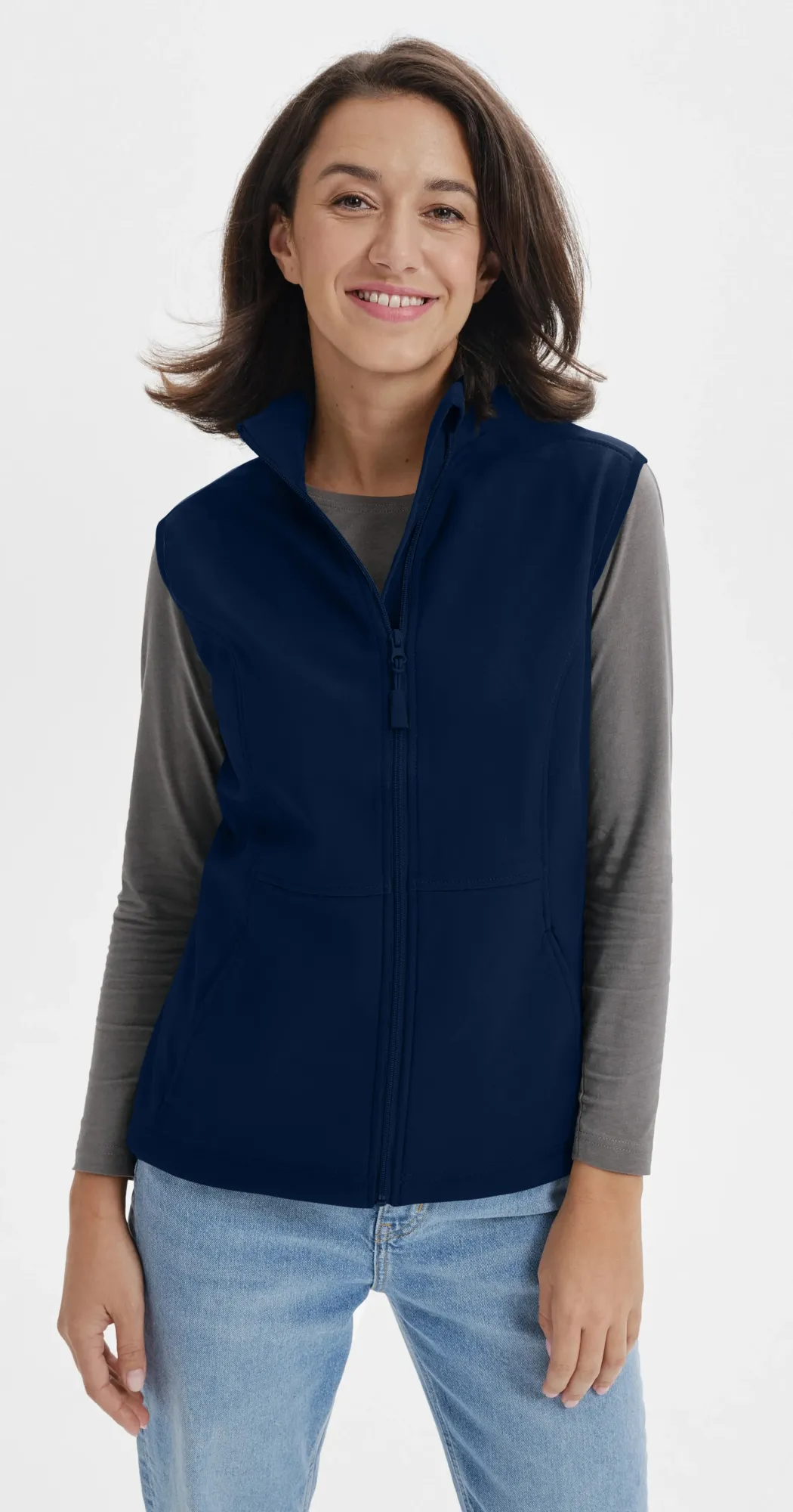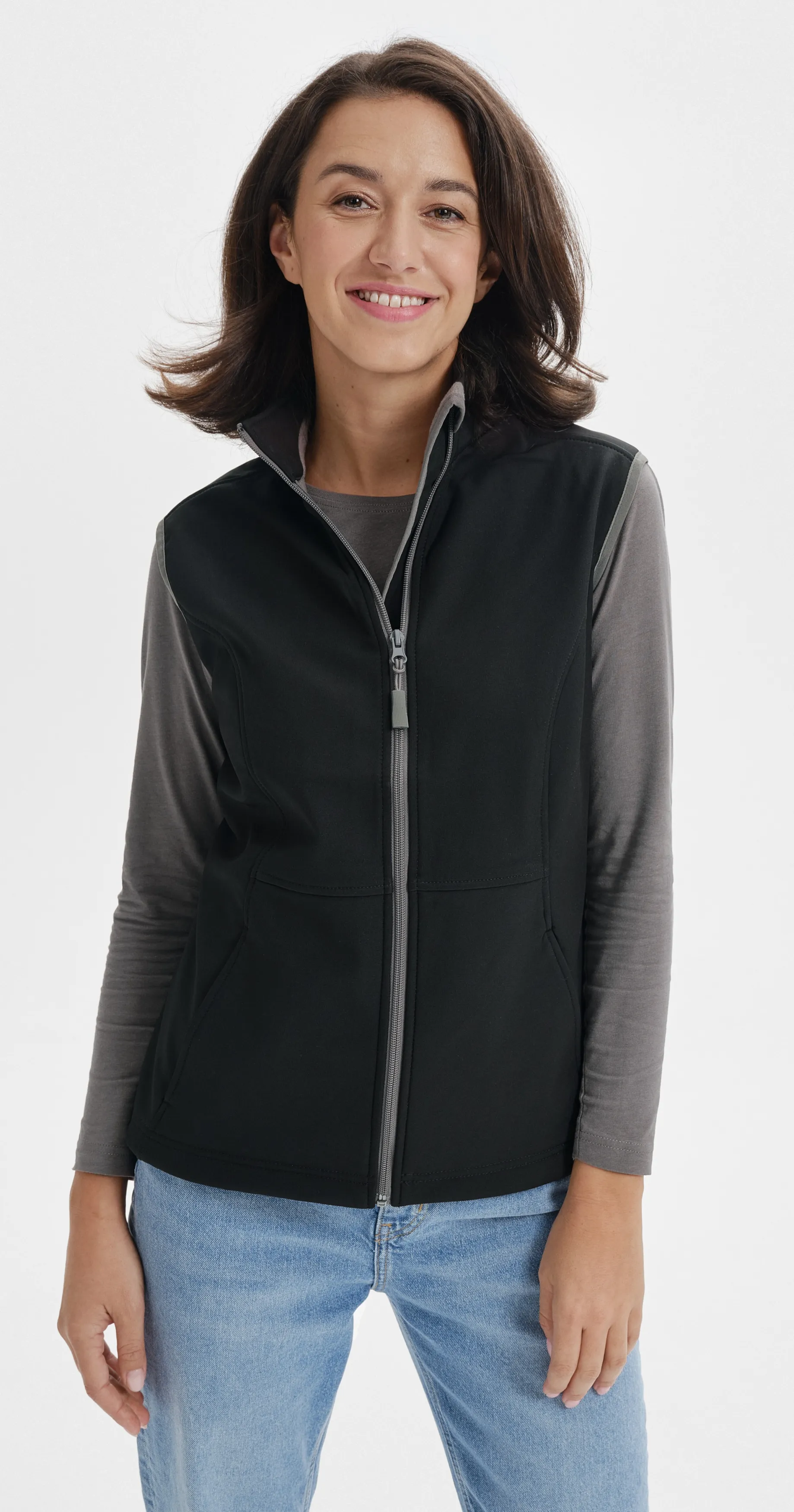 Smal softshellväst för kvinnor med fickor och blixtlås.